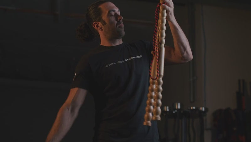 Body Lever has a slim, unique silhouette crafted from solid wood with a natural finish that feels both primal and modern. It's built from two 27-inch sticks connected by a long-lasting, load-bearing paracord rope. Each lever stick features sculpted ball-shaped grips that add to its signature look while ensuring a secure, ergonomic hold. Lightweight yet sturdy, Body Lever is designed for real work—not gimmicks—and looks good enough to keep out at home, your office, or the gym.