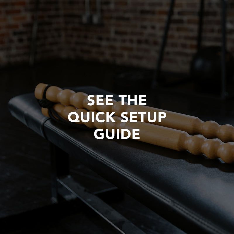 You are the fulcrum. You drive the motion. Place the wooden sticks (lever) around yourself so the rolling surface or pin-pointer is against the muscle/tissue you want to work on.